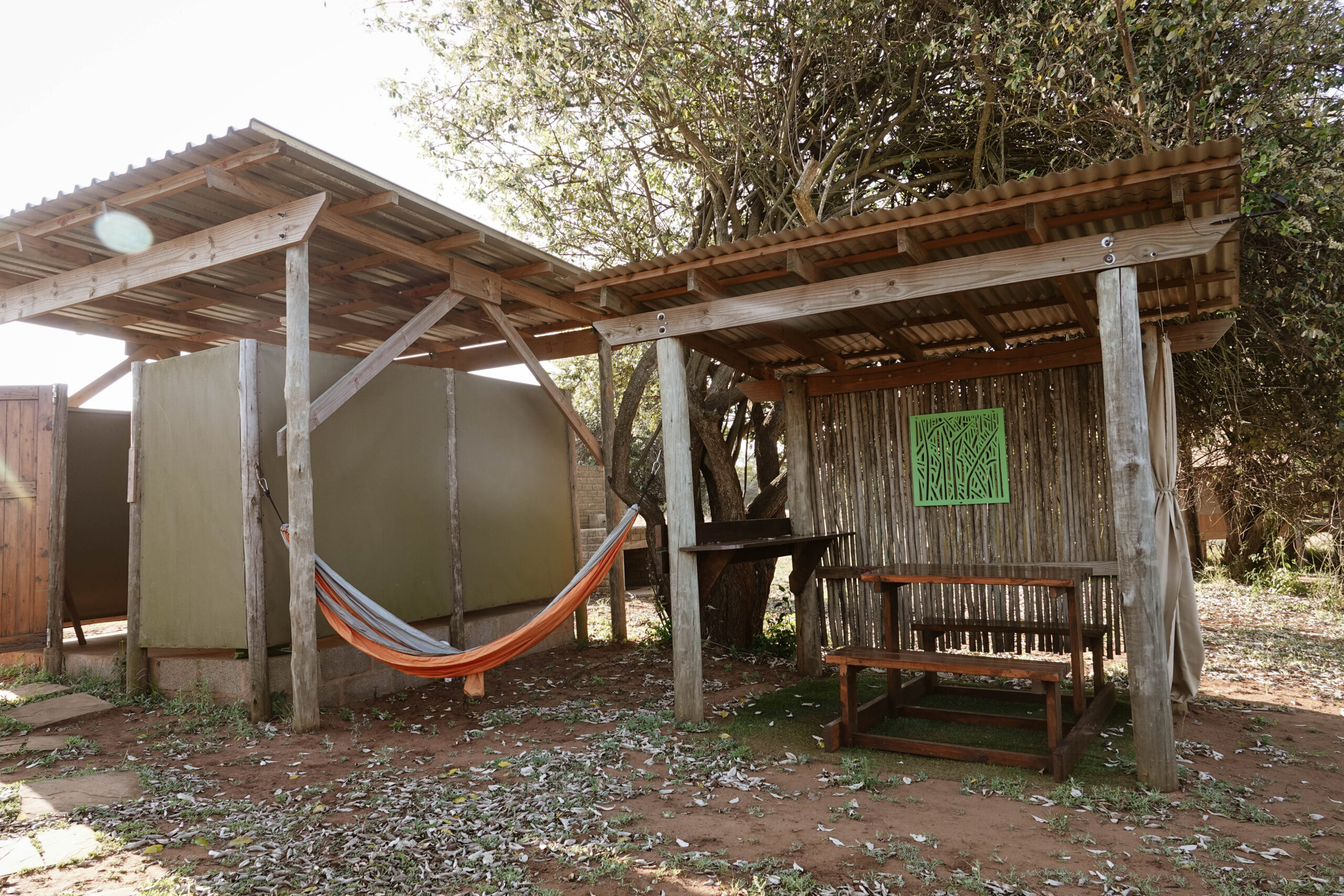 Estrela is an open-sided stargazing tent which looks onto a scenic field. No need to cook here – our rates for Estrela include breakfast and dinner but you have a small fridge and tea & coffee station for that first cuppa to take in the sunrise. There is also a braai stand in which you can light what we call a “kuier vuur” in South Africa – direct translation: “visit fire” – where you’d like to sit and visit for hours while you sip on a glass of wine and take in the sounds of the surrounding bush life. For now, you will share the glamping ablution block with shower, toilet, basin and dishwashing facilities.